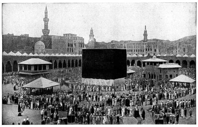 Elle (Mekka ndr) est bâtie dans une une vallée étroite entièrement dénudée et entourée de tous cotés par d'effroyables déserts. Malgré ces énormes désavantages, ses rues offrent le spectacle d'une activité inimaginable; ses boutiques sont abondamment approvisionnées et son ravitaillement pour tous les besoins de la vie tient réellement du prodige. Avec une pareille affluence de pèlerins et avec les cinq ablutions journalières de chacun d'eux, nous craignions de manquer d'eau. Or, nous en avons toujours en surabondance pour tous nos besoins et pour le lavage de notre linge et de nos vêtements. Mais aussi, quelle activité autour des puits ! Il en existe un à quelques pas de notre porte, et il offre un spectacle peu banal, celui de sa multitude de porteurs d'eau criant, gesticulant et tirant les seaux ou les chargeant sur leurs épaules avec une rapidité fantastique. Un de nos plus vifs étonnements est de constater la quantité incroyable de bois employé pour les milliers d'énormes moucharabiehs, qui aèrent les maisons de cette ville, dans les environs de laquelle il ne pousse pas un seul arbre.(...) Les maisons de Mekka présentent à peu près les mêmes dispositions et le même aspect que celles de Djedda et d'El Madina. Mais, la prospérité y étant plus grande, la plupart de ces maisons sont mieux bâties et plus luxueuses. Beaucoup d'entre elles possèdent un système de terrasses superposées et correspondant aux trois derniers étages (...). Les objets spécialement destinés aux pèlerins, que l'on voit dans les boutiques sont des récipients de tous genres pour l'eau de Zemzem: de beaux tapis d'Orient et d'affreux tapis de prière, de camelote hollandaise; des chapelets de toutes espèces; des livres religieux; des sacs de henné; du koheul et de petites fioles à koheul en métal; des parfums; du mesouak en bois d'Irak; des bagues et des bijoux; des voiles hindous brodés de soie, pour turbans, etc.